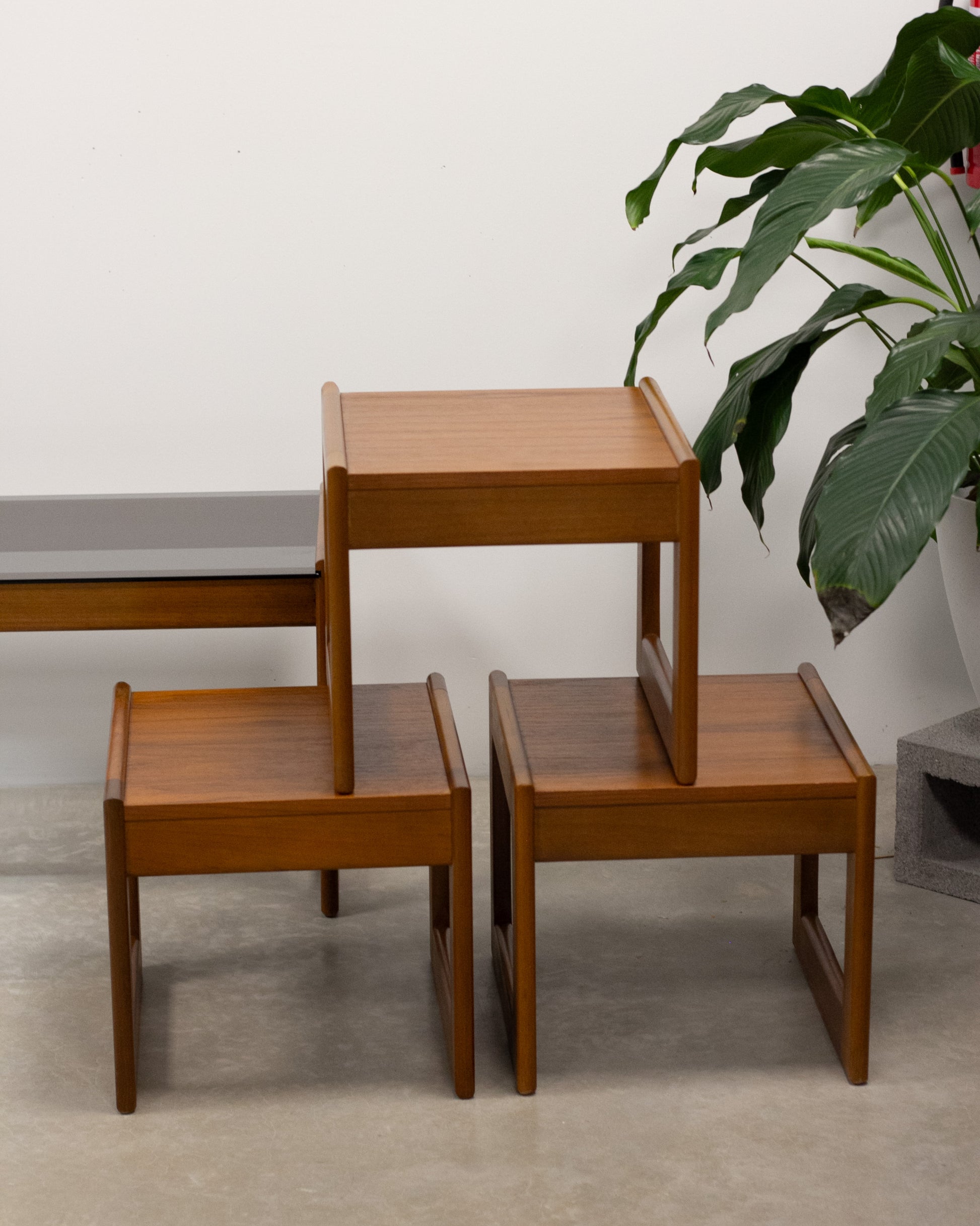 Alrob Mid Century Teak & Glass Nesting Coffee Tables