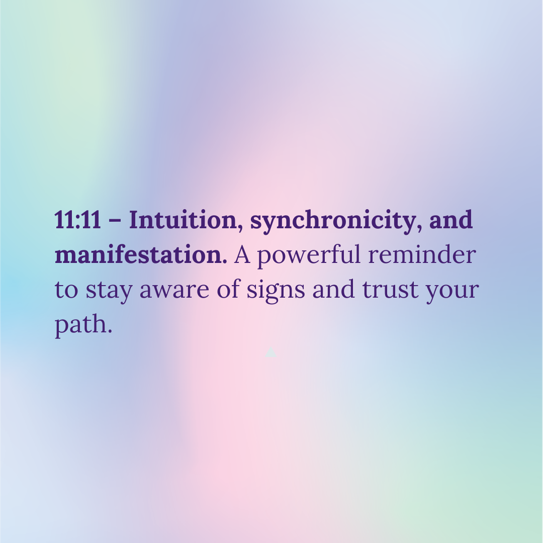 - 11:11 – Intuition, synchronicity, and manifestation. A powerful reminder to stay aware of signs and trust your path.