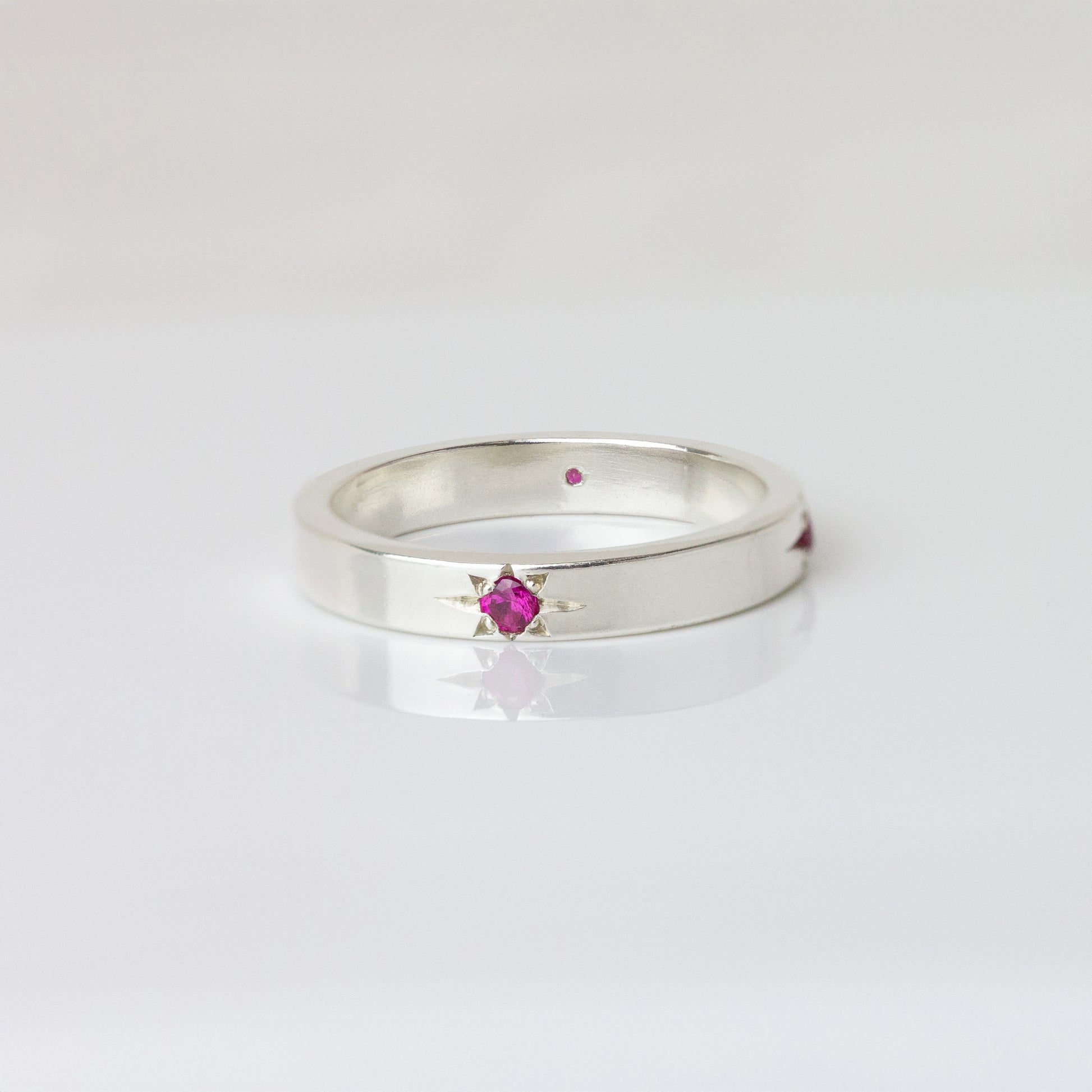 Featuring four star-set stones equally set around the band. Choose from Natural Diamonds, Rubies, or Australian Sapphires — each creating a band full of colour, comfort and everyday magic.