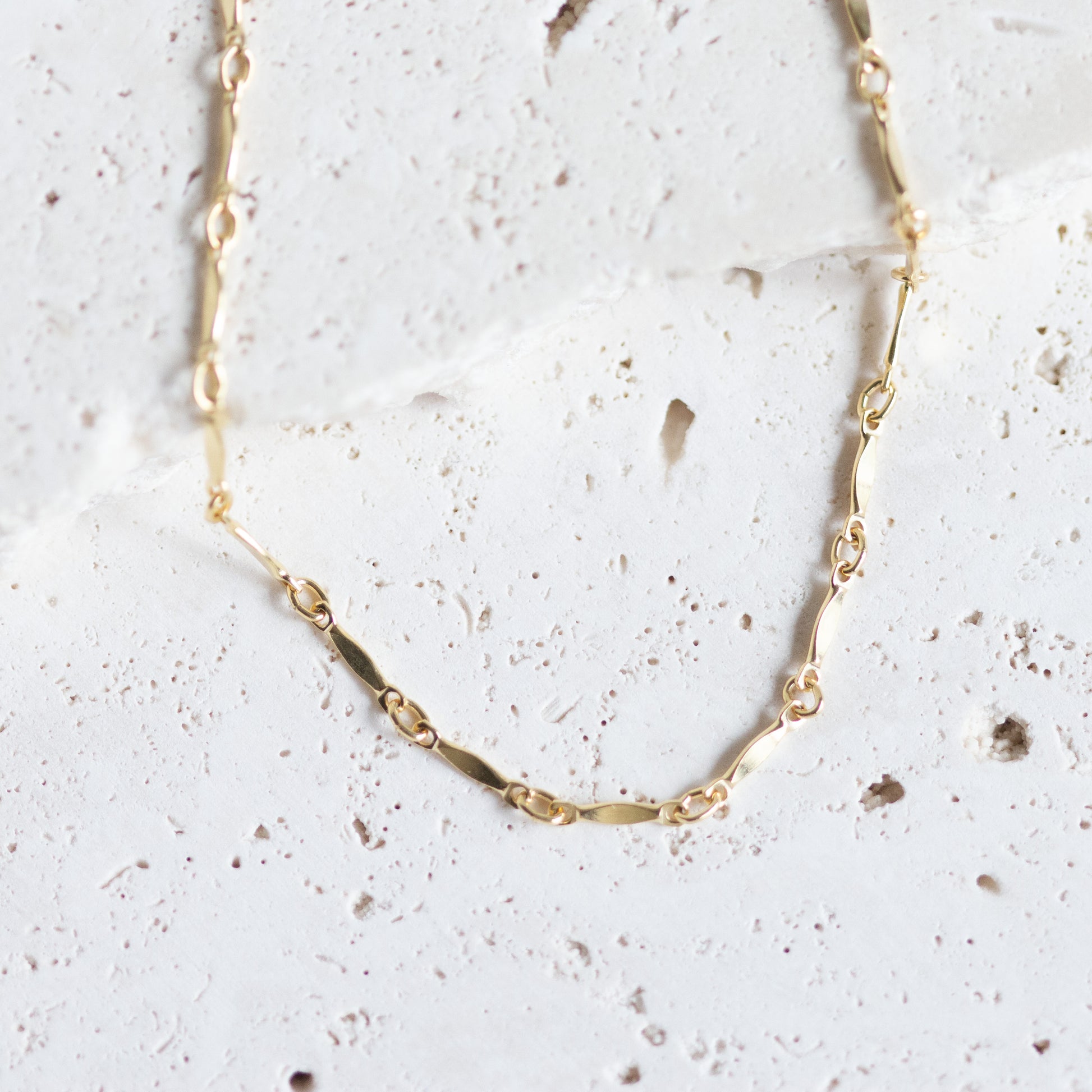 The Bar link chain is a medium-weight chain which is beautiful on it's own, or layering with your other chains