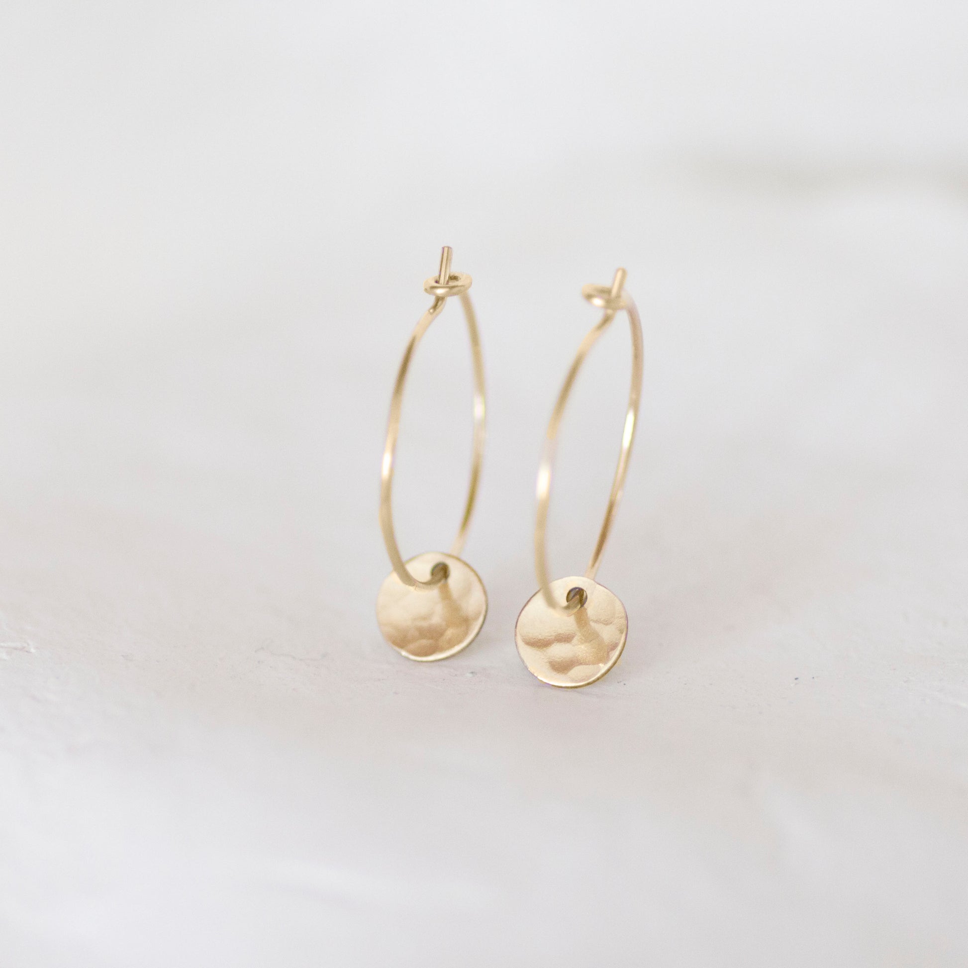 I have been wearing these gold filled hoops almost daily for 2 years and it is the perfect everyday earring. Nice and light with the golden discs that just give the most beautiful shimmer when the light hits it. The wire is strong enough that I have not ever lost my earring or have to worry about it falling off despite daily wear. It still maintained its perfect round shape so well despite all the putting on/taking off. I am mostly impressed about the quality with gold filled wire and the discs as it has not tarnished a single bit. Absolutely love these hoops!