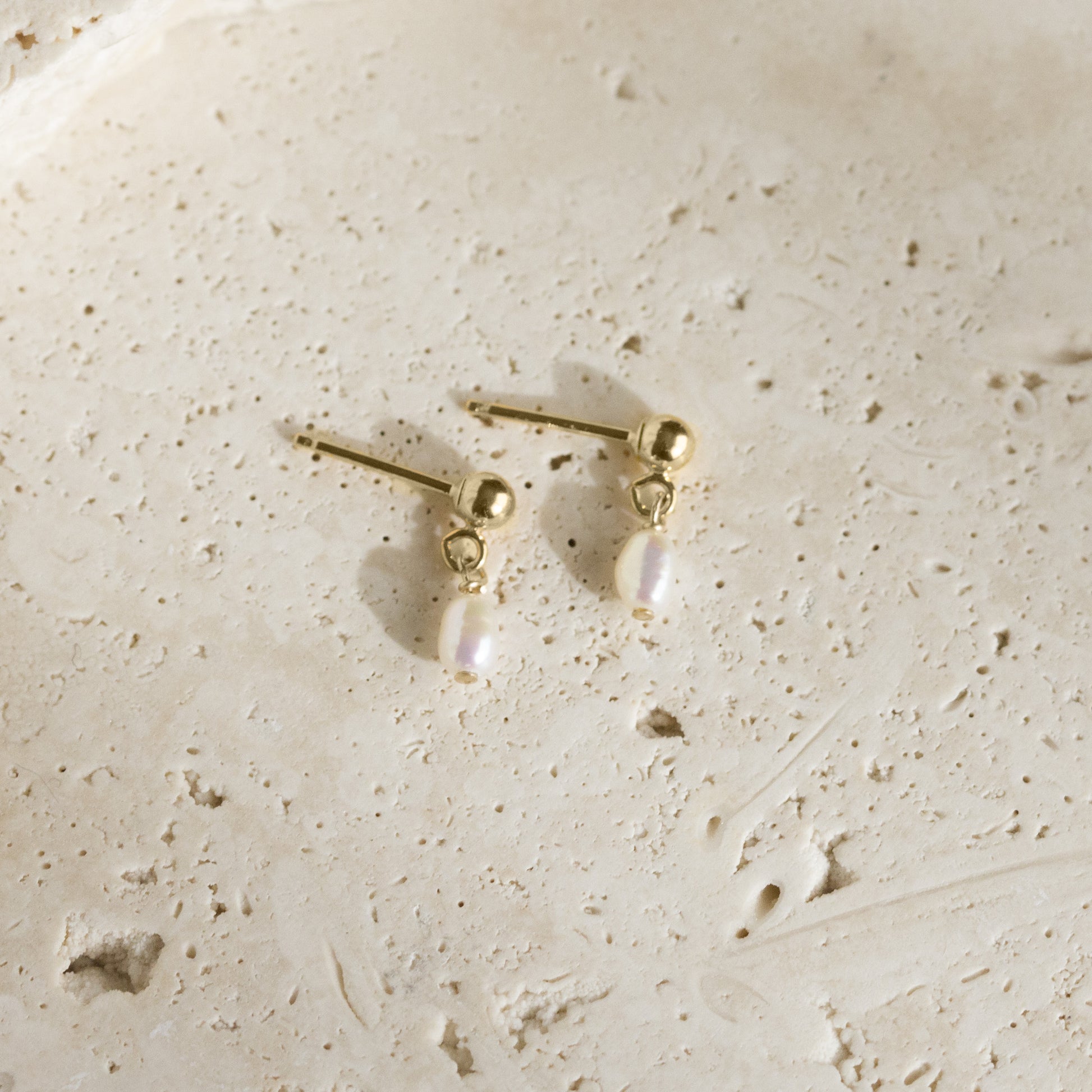 Introducing our Roe Pearl Studs — a small dangle-style stud featuring a tiny 2mm freshwater seed pearl. Roe is the perfect size for stacking as she isn't too large to impact other piercings, but still get noticed. She's a minimalist dream.